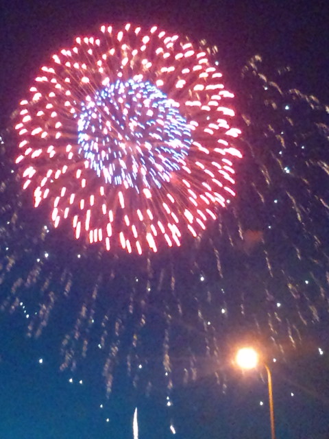 で、駅までチャリ取りに行った後、川沿いで花火。